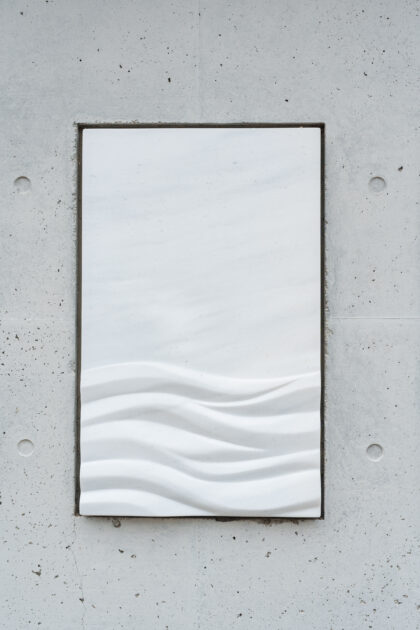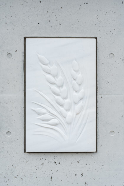 素材となった大理石はレリーフに光を与え、この場を明るくするとともに四季折々の光の変化を微妙に反映します。夜は照明によって照らされ、通りを明るくすることでしょう。人々の心にも希望に満ちた明かりが灯りますように。
